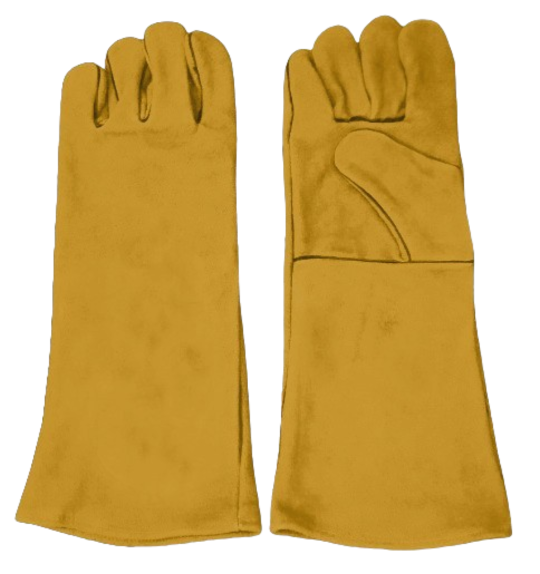 | Thick Red Split Leather (1.2mm-1.3mm) | Provides superior defense against heat, sparks, and flame. Yellow Welding Gauntlet |