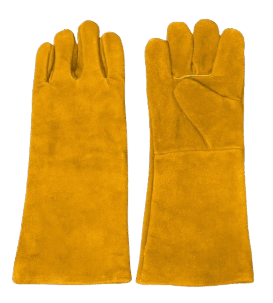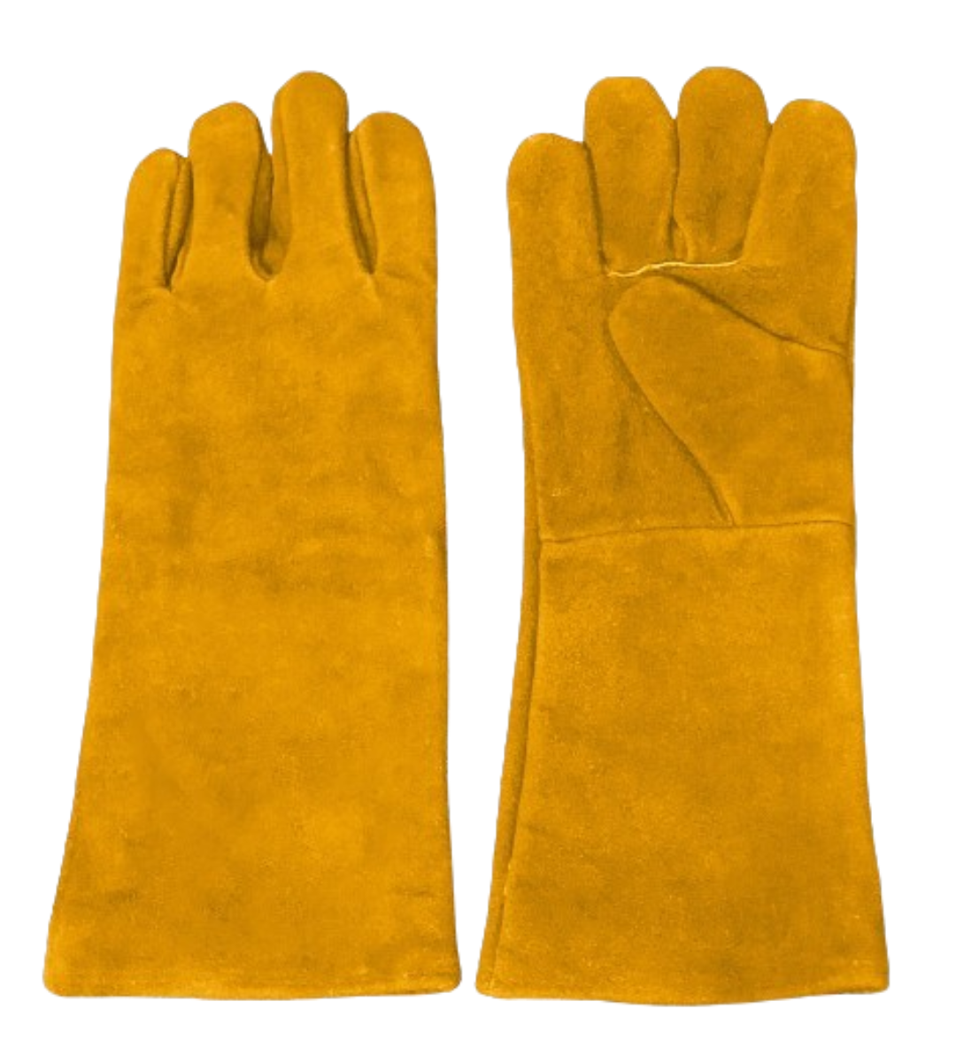 Thick Red Split Leather (1.2mm-1.3mm)Provides superior defense against heat, sparks, and flame. Yellow Welding Gauntlet