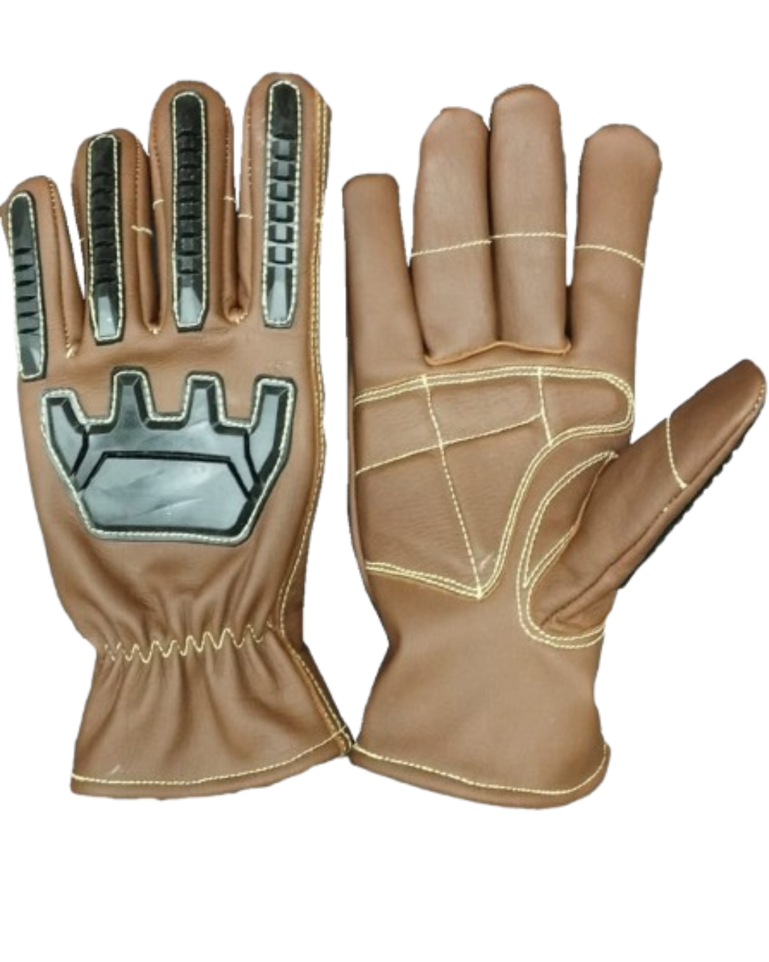We integrated strong, tactical ThermoPlastic Rubber (TPR) shields across all critical impact zones. In fact, these flexible yet highly resilient shields effectively absorb and dissipate severe blows across the knuckles, metacarpals, and fingers. This is essential for safety during heavy equipment maintenance and rigging operations. Significantly, the glove body uses Premium Brown Grain Leather. This material provides excellent abrasion resistance and maintains a firm, secure grip. The detailed palm stitching enhances the ergonomic fit and flexibility.